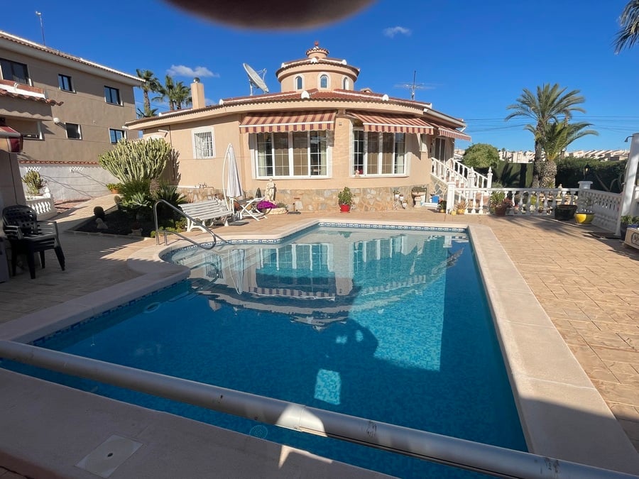 An exceptionally well build 5 bedroomed 3 bath luxury villa situated in the well sought after area of Cuidad Quesada. Only 40 minutes from Alicante airport and 10 minutes by car to the Sandy Beaches of Guardamar. Boasting a private swimming pool ,and laid out on well kept mature gardens. The plot consists of 0ver 1000 sq metres. This Beautiful Villa needs to be viewed and the property comes with the advantage of a seperate living area closeby.