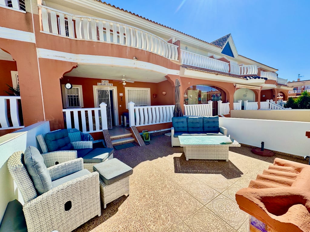 Beautiful 3-Bedroom Home with Pool Views in a Gated Community\r\nSituated in a secure gated complex, this immaculate 3-bedroom, 2-bathroom home offers the perfect blend of comfort, style, and convenience. With a generous 101m2 built on a 200m2 plot, the property is presented in excellent condition and ready to move into.\r\nStep inside to find a bright, east-facing living space, a fully fitted separate kitchen complete with white goods, and a handy utility room. All three bedrooms feature built-...