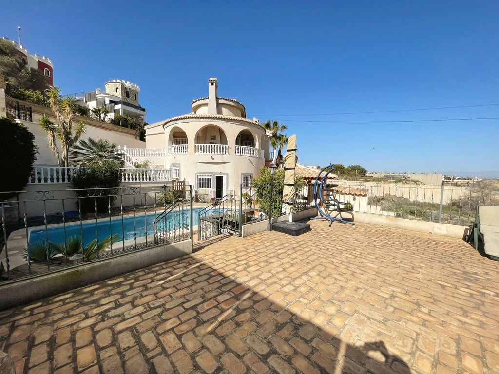 We offer this huge property, for sale in Ciudad Quesada, with amazing views out towards the whole region, the mountains as well as sea views. \n \nThe villa sits on a spacious 500m2 plot, which has a private swimming pool, plenty of outdoor seating and dining areas, as well as numerous terraces to sit and enjoy the scenic views. There is also a 64m2 double entrance garage, with electric doors, great for off road parking, as well as having room for storage or a workshop. \n \nThe property its...