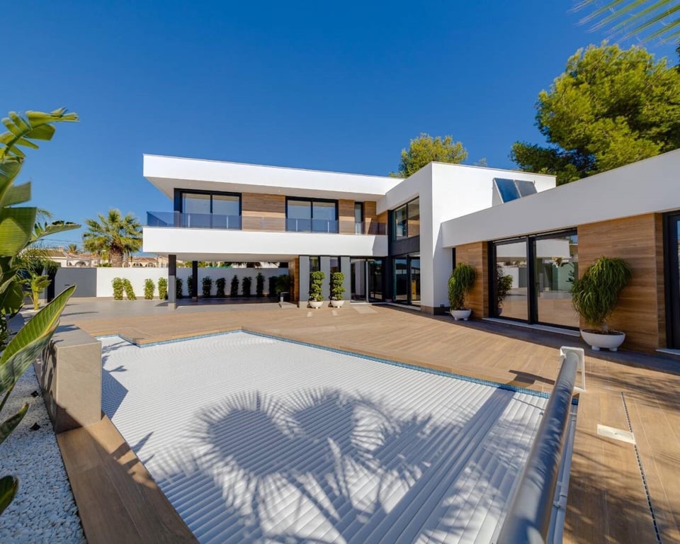 We are pleased to introduce this luxury villa onto the market with a total area of 220 square meters built The property is located in the heart of Ciudad Quesada to be standing on a 654 square meter plot. with private pool of 5 x 10 with salt water and parking for two cars.The house has 4 bedrooms( 2 en-suite) and a total of 4 bathrooms, an open kitchen, living room with dining room, laundry room, covered/ uncovered terrace. With private pool of 5 x 10 with salt water and parking for two cars.Th...