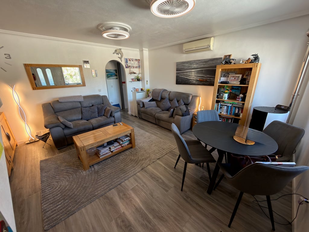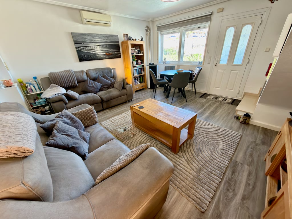 \r\nCharming 2-Bedroom Villa with Private Garden and Communal Pool\r\nThis beautifully presented 2-bedroom, 2-bathroom villa, built in 2004, is offered in excellent condition with furniture negotiable. The property is thoughtfully designed across 80m2 of built space on a 200m2 fully tiled plot, making it ideal for both permanent living and holiday use.\r\nThe villa features a bright, functional layout with a fully equipped kitchen, a utility room, and spacious living areas that open onto a priva...