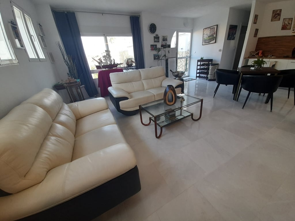This exclusive two-story property, with independent exterior entrances to each level, offers multiple possibilities thanks to its unique layout.On the main floor, you’ll find a spacious living-dining room, an elegant kitchen with an island, 2 bedrooms, and 2 bathrooms. The lower floor features another living-dining room with an open-plan kitchen, 2 bedrooms, and 1 bathroom.Additionally, the villa includes an exterior bedroom with a private en-suite bathroom and a multifunctional guest house with...