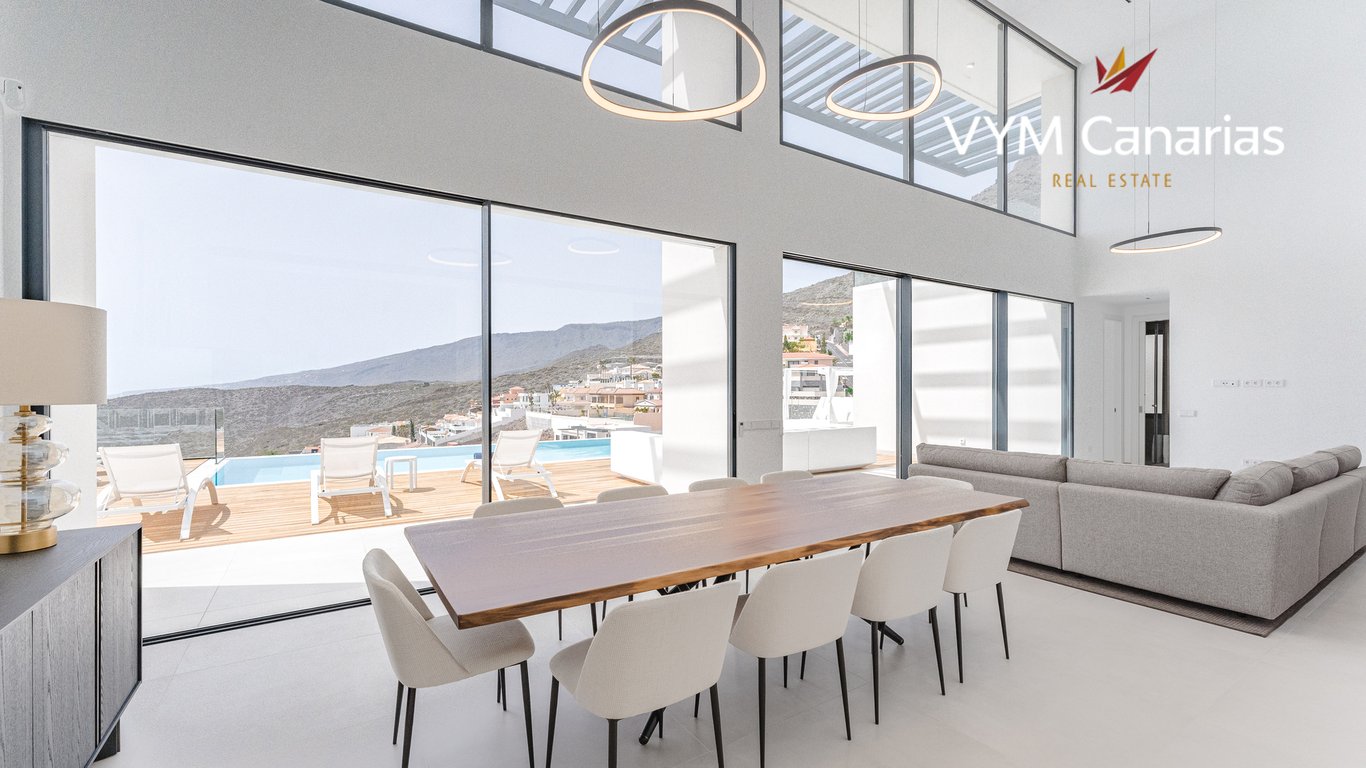 Villa AQUAstar – minimalist and aesthetic, close to the starry sky, great sea view, Tenerife South At the foot of the most sacred mountain of the ancient Canarians, Roque del Conde, very close to the mystical starry sky, lies Villa AQUAstar. It presents itself as a modern, functional home that creates perfect transitions between the exterior and interior areas to achieve a southern lifestyle feel. The most fantastic views of the sea with the neighbouring islands. The living room has double-heigh...