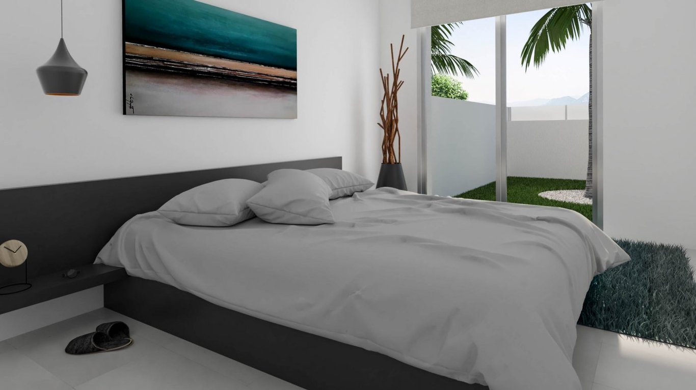 Carlas villas. Independent villas on plots of 200m2,. 3 bedrooms, 2 bathrooms, 1 toilet.. Living room, fitted kitchen, 160m2 built, 16 m2 terraces, 61 m2 solarium.. Garden with artificial grass, parking , pool and laundry.. Energy with solar panels. South orientation .. It is close to several towns such as San Fulgencio, Rojales, Benijofar and Ciudad Quesada, with its variety of restaurants, culture, shops and much more. For those who like to play golf, La Marquesa Golf is only 10 minutes...