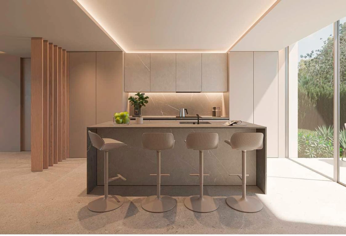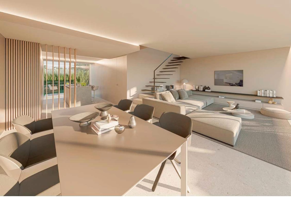 This villa project will make you fall in love with its fantastic and modern design, its practical distribution and also for its magnificent location, in a very quiet residential area only 10 minutes walk from the town centre.~ ~ The villa has 147m2 distributed over two floors. On the main floor there is a living-dining room with large windows to the outside, an open kitchen with island, a bedroom and a complete bathroom. On the upper floor there are two double bedrooms, both with en-suite bathro...
