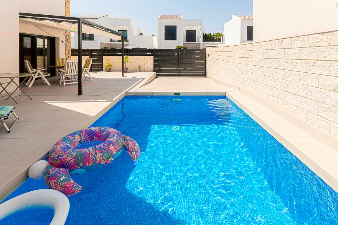 We are pleased to offer this stunning villa located in the prestigious Doña Pepa urbanization, in Ciudad Quesada, Rojales. With a spacious plot of 201 m2, this property stands out for its excellent layout and numerous extras that ensure a comfortable and modern life. The villa features a 201 m2 plot that includes a private pool, ideal for enjoying sunny days. Additionally, there is ample space to park the car on the property, with pre-installation to place a motor for an automatic gate, facil...