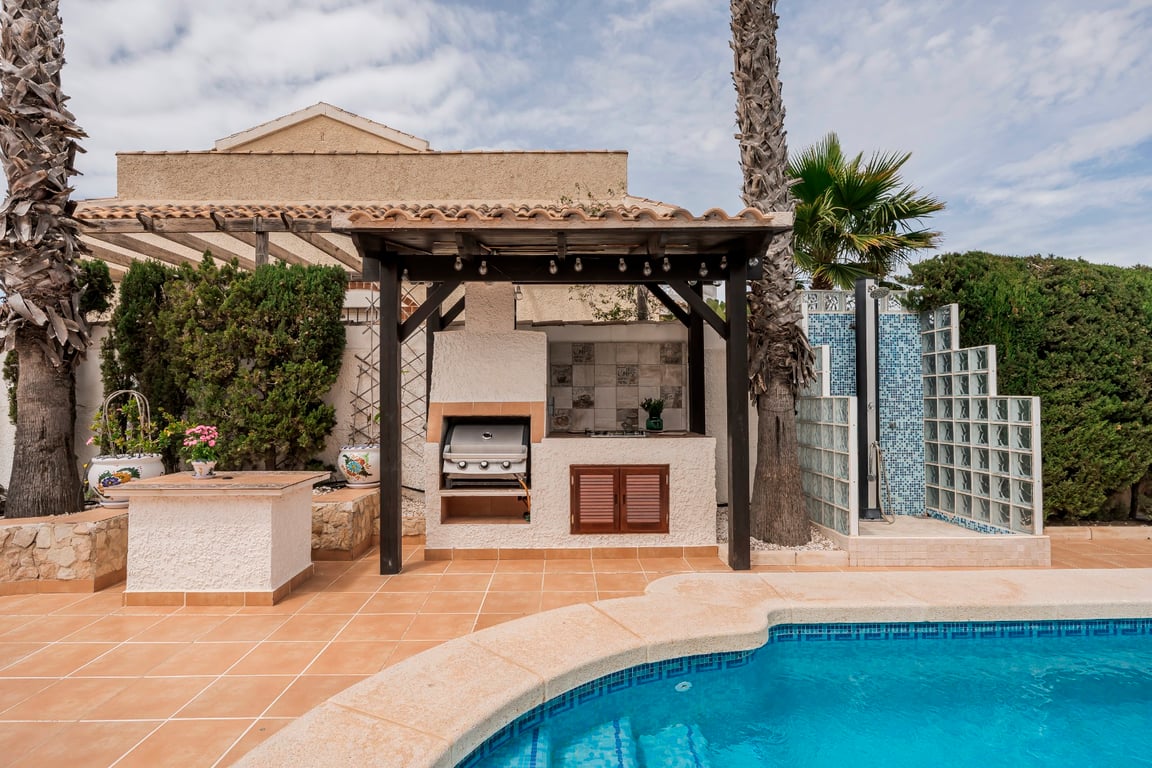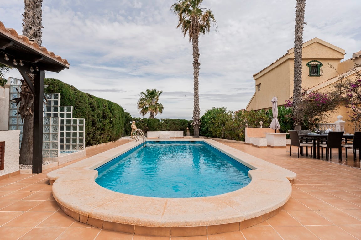 Costa Blanca Eiendom presents this spacious detached villa situated on a desirable corner plot in the heart of Gran Alacant, just a short walk from the sea. Combining privacy, comfort, and generous outdoor space, it’s ideal for families or anyone seeking a relaxed Mediterranean lifestyle close to all amenities. Upon entering the plot, you're welcomed by a wide open area, a generous private swimming pool, and a built-in outdoor kitchen with gas barbecue. You can walk all the way around the villa,...