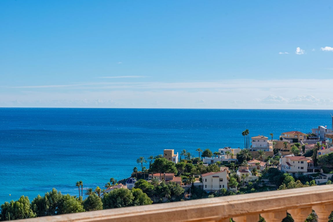 Hilltop Villa with Panoramic Sea Views – Coveta Fumá, Northern Costa Blanca Located in the sought-after area of Coveta Fumá, this stunning hilltop villa offers uninterrupted sea views, total privacy, and an exceptional Mediterranean setting. Villa Edelweiss features 268 m2 on a large elevated plot—more than three times the size of the house—and enjoys a south-facing orientation for all-day sunshine. Within walking distance of Cala Piteres beach and the tram station, and just a few minutes' d...