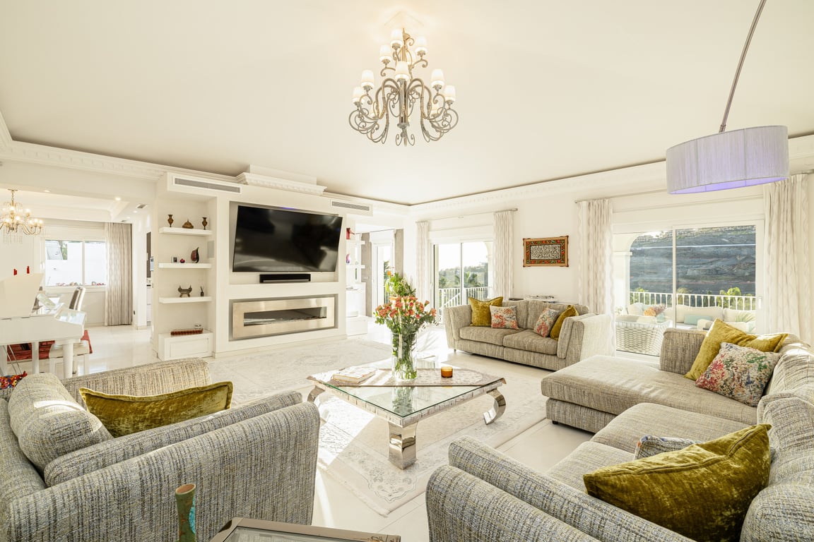 Located in the prestigious area of El Paraíso Alto, but within the La Alquería urbanization, this villa combines luxury, comfort, and cutting-edge technology. The property has been recently renovated with the highest quality materials and is ready to move in. Upon entering the main floor, you will find a spacious living room that extends to a west-facing covered terrace, ideal for year-round enjoyment. From here, you can appreciate spectacular views of the Mediterranean Sea with Gibraltar as a ...