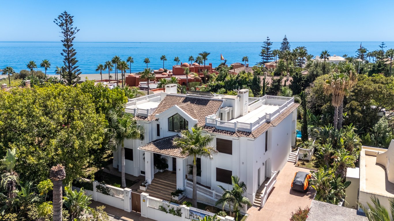 This spectacular newly built villa is located just a few meters from the beach, offering a perfect combination of luxury, quality, and timeless style. Situated in one of the most coveted areas of the Costa del Sol, the property enjoys unbeatable privacy while also being conveniently close to all kinds of services, restaurants, supermarkets, and prestigious schools. With a built area of 761 m2, this impressive residence is distributed over three floors and sits on a spacious plot of 2,043 m2. ...