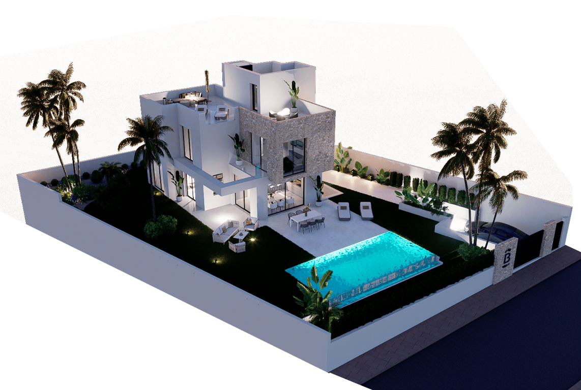 Beautiful modern villas close to Benidorm, these villas have options of basements or semi basements with the option of adding more bedrooms and bathrooms and even a lift if needed. The plots are all large from between 500 and 600 m2 and are close to the beaches and entertainment of Benidorm.