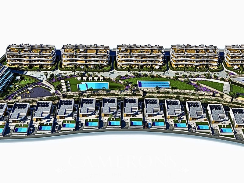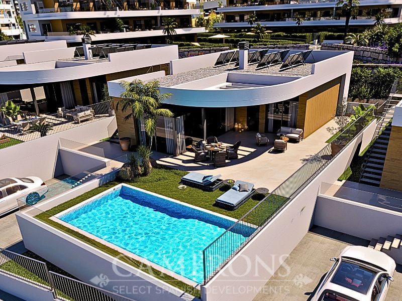 The villas at Finestrat Paradise Resort are located on spacious private plots of approximately 556 m2 to 700 m2 featuring a carefully planned layout designed to maximise comfort, light and connection with the outdoors.The property has a total built area of approximately 230 m2.On the ground floor, there is an elegant living room with an open concept kitchen, fully connected to the outside through large windows that give access to the terrace and garden area with private pool.This floor also has ...