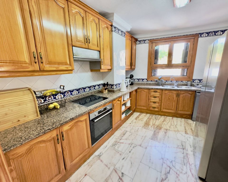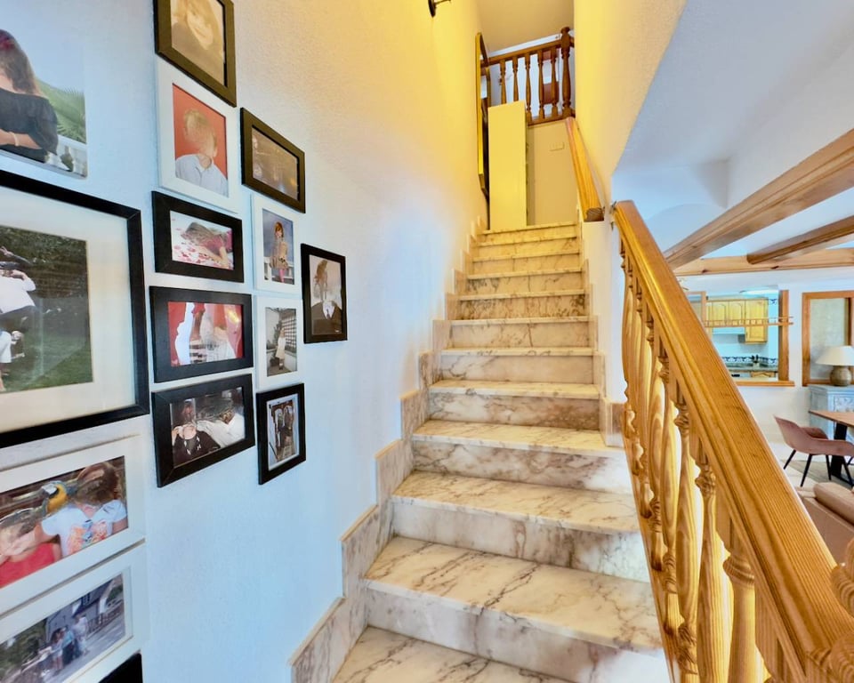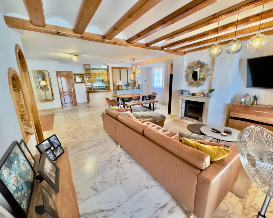 This exceptional property, constructed in 1995, boasts five spacious bedrooms and three bathrooms, complemented by an additional toilet. With a generous built area of 270m2, it features a private pool and a garage with space for two vehicles. The home is designed for comfort and convenience, offering an open-plan living and dining area, a fully fitted kitchen, and a utility room. The east-facing orientation provides panoramic sea views, while the easy maintenance gardens enhance the outdoor expe...