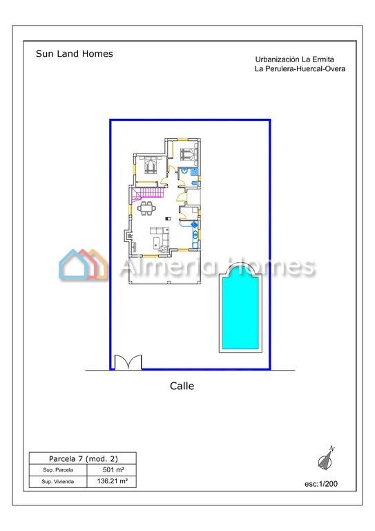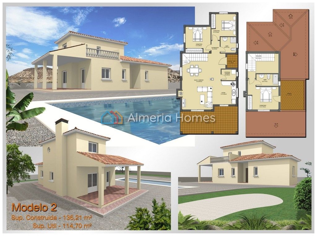Detached modern off plan 3 bedroom villa for sale in the Huercal Overa area set in a walled plot of 500m2. Built & finished to an exceptionally high standard, the villa comprises kitchen with appliances, large lounge / dining room, master bedroom with well sized en-suite bathroom and sun terrace, 2 further double bedrooms and a family bathroom. There is also a large covered porch. If you wish to have a swimming pool this is an additional 18,000 Euros + IVA. The property benefits from secur...