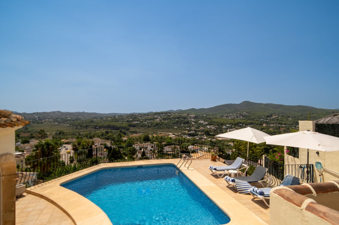 Set in the desirable area of El Rafalet, this immaculate 5-bedroom villa offers some of the most captivating southwest-facing views in Javea, taking in the surrounding mountains, rolling countryside, the charming town of Benitachell, Javea Golf Club, and the nearby national parks. The property is exceptionally well cared for and enjoys a bright, welcoming feel throughout. In addition to the main residence, there’s a generous and fully independent one-bedroom apartment on the lower level. Unlik...