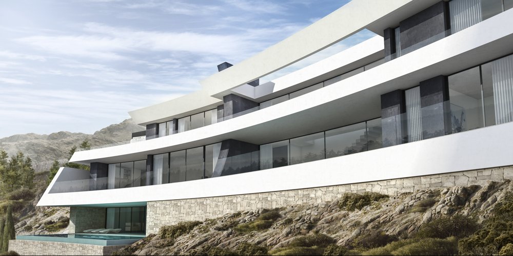 Design villa located in the exclusive area , within walking distance of the port of Javea, as well as all services and beaches.On a plot of 1600 m2, with a total area of 1105 m2, living area of 632 m2, 293 m2 covered terraces and 180 m2 open terraces.Distributed over three levels, the villa consists of six bedrooms, four bathrooms, two guest toilets, ample living room, utility room, wine cellar and sauna.Passenger lift connects all 3 floors.Outside we find various terraces as well as two heated ...
