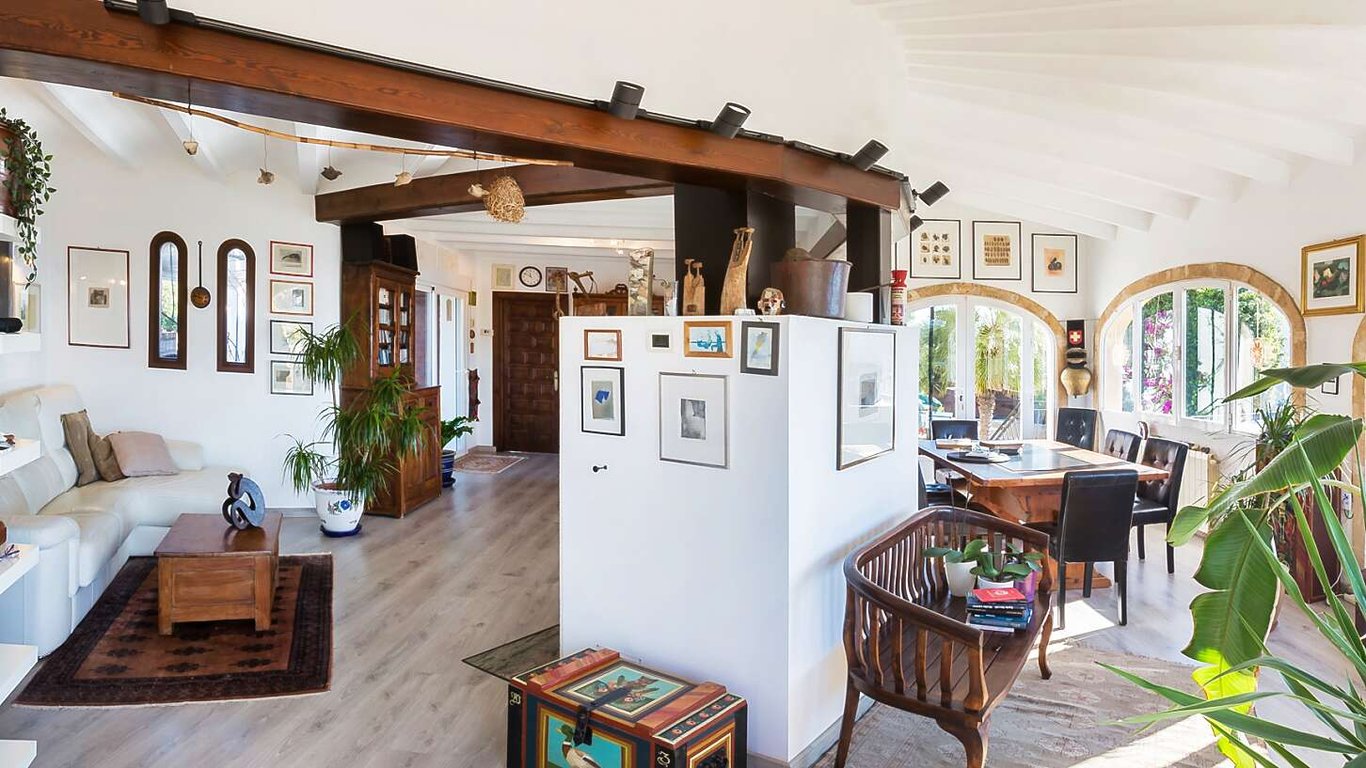 Mediterranean-style villa enjoying an exceptional setting and embodying the essence of traditional architecture in Jávea, offering a warm and authentic Mediterranean character. Built in the purest local style, the property features charming stone arches, wooden beam ceilings, and a cozy central fireplace that brings a warm and inviting atmosphere to the home, making it ideal for year-round living. The villa is intelligently distributed to make the most of both the indoor and outdoor spaces. Seve...