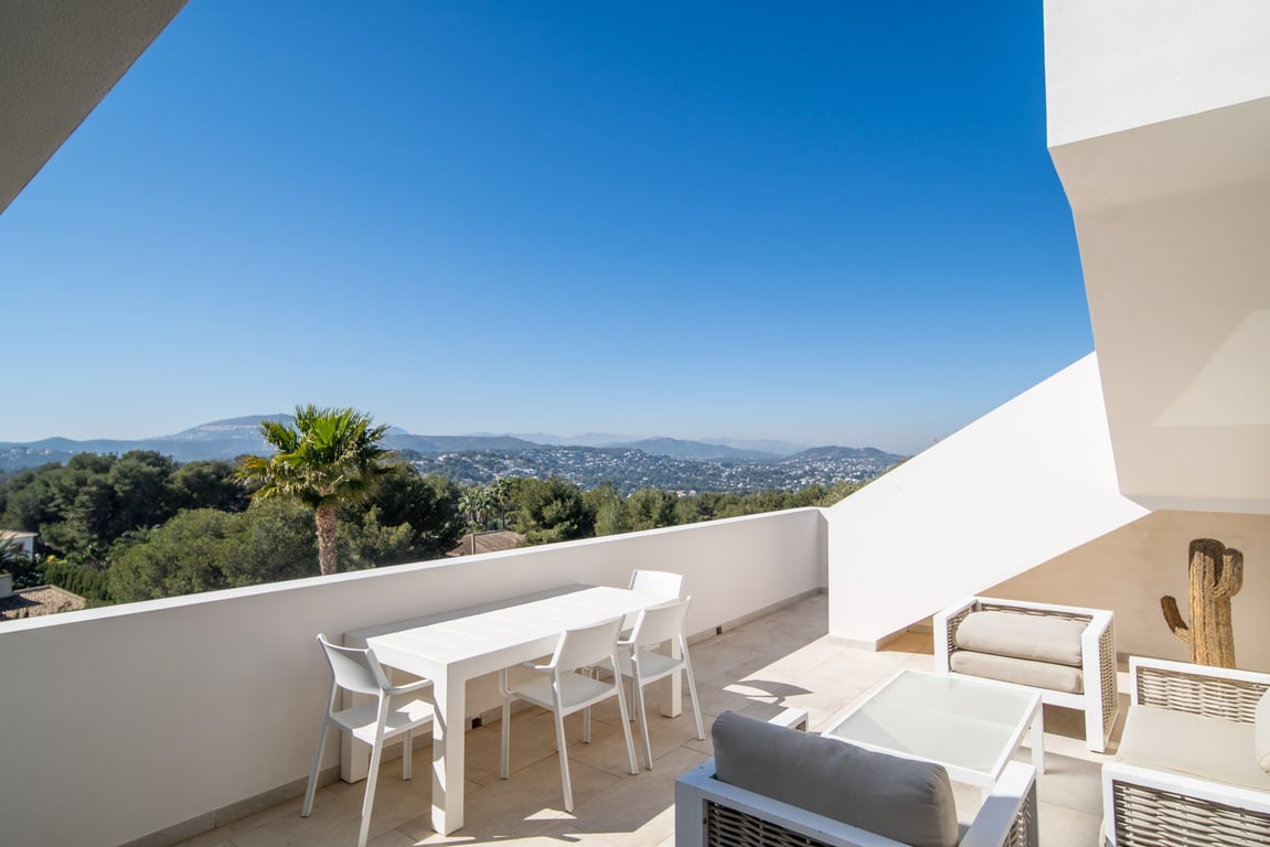 Set in an elevated position with open views in every direction, this south-facing four-bedroom villa enjoys an exceptional outlook across both the Mediterranean coastline and the surrounding mountain landscape. It is rare to find a property that captures sea and mountain views so clearly from multiple levels of the home, offering a constantly changing backdrop from morning through to evening. The main living level has been designed to take full advantage of this dual aspect. Large windows and sl...