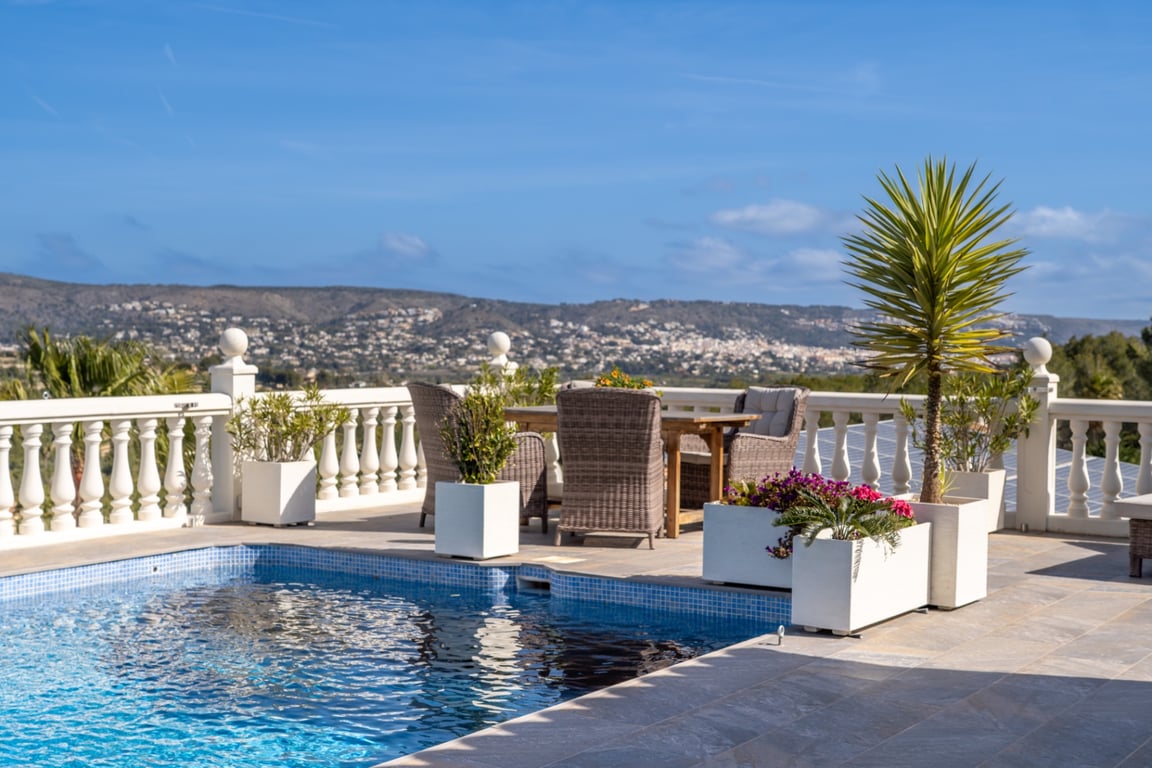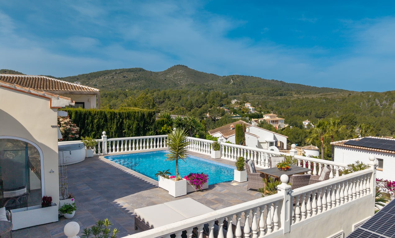Located at the very top of Covatelles in Jávea, this beautifully reformed villa enjoys one of the most privileged positions in the urbanisation, offering some of the finest panoramic views available. Overlooking the surrounding national park, which can be accessed at the end of the road, the property also captures stunning views of Montgó and across Jávea’s old town. With its elevated position, the villa benefits from spectacular sunsets and exceptional outdoor spaces designed to make the most o...