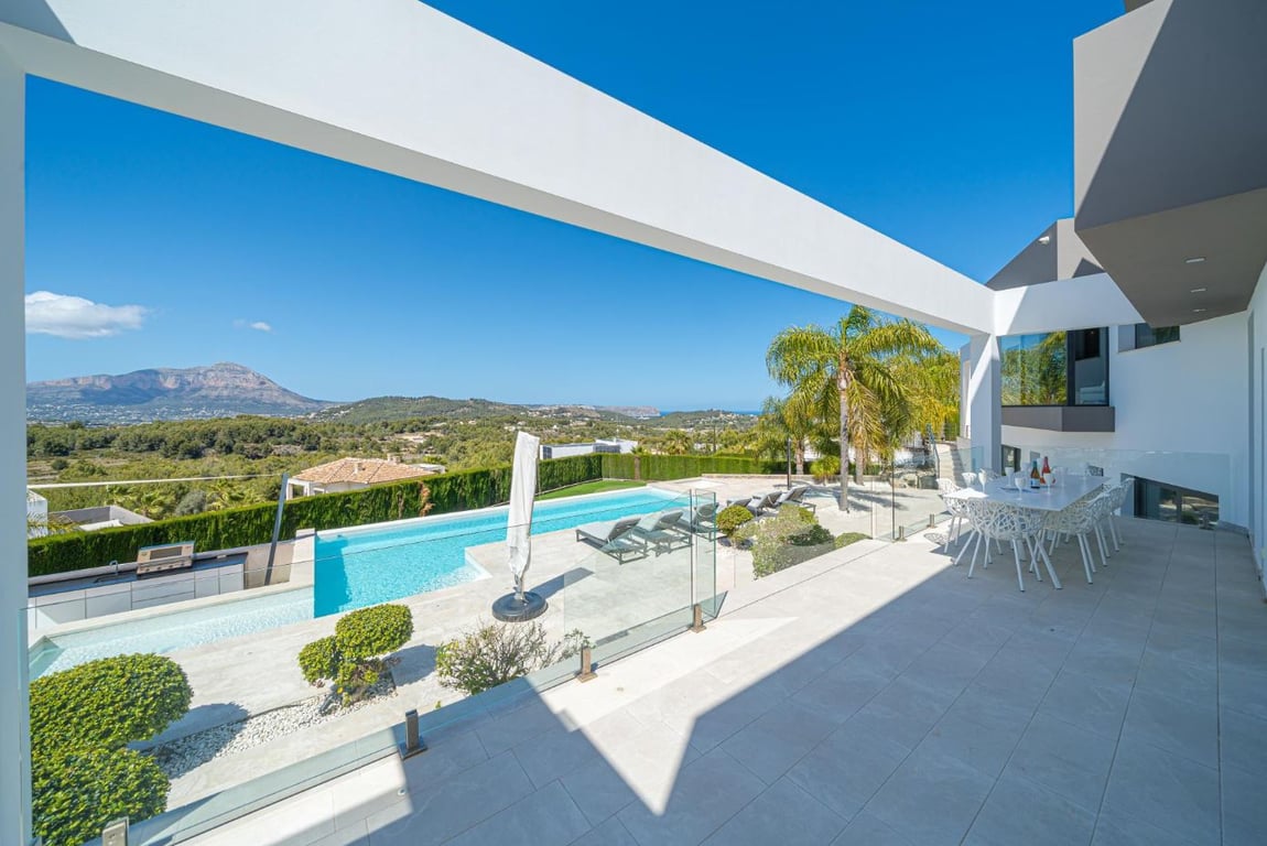 Modern Design Luxury Villa in JaveaA visually stunning property boasts a truly impressive living area with high ceilings and large glass expanses, creating a sense of spaciousness and allowing plenty of natural light to flood the room. The stunning views outside provide a beautiful backdrop to the space, and the way the glass almost frames the views is picture-perfect.Experience the ultimate outdoor living with sublime areas designed to make the most of the beautiful Mediterranean weather. A lar...