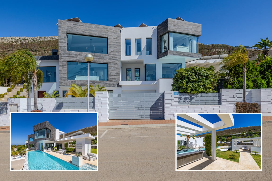 Javea Costa Blanca magnificent villa with sea view for sale, distributed over 3 levels with a total of 521m2 of designed living space, located in the prestigious area of Les Canselades, the villa has 5 luxury bedrooms all with own en-suite bathrooms, impressive open plan living room with both sea and mountain views, superior design fully equipped kitchen, upper level master bedroom suite, open plan office areas, lower level, bedroom with ensuite bathroom, spa with sauna, heated pool, gymnasium, ...