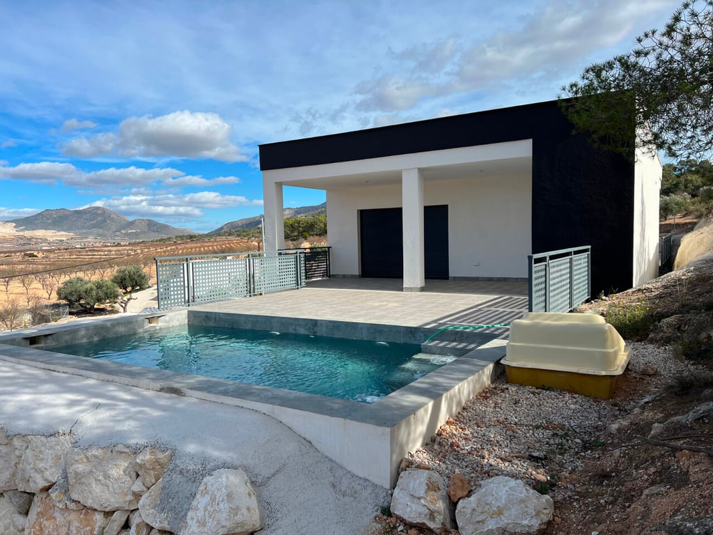 New build villa for sale Cañada de la Leña with pool and stunning views. This stunning villa offers spectacular mountain views and is surrounded by vineyards, creating a pleasant and quiet natural environment. The house features three bedrooms, two bathrooms (one en-suite), an open kitchen, and a spacious dining area with sliding doors that lead to a terrace where you can enjoy the abundant sunshine and take refreshing dips in the pool. The villa also includes electric blinds, air condition...