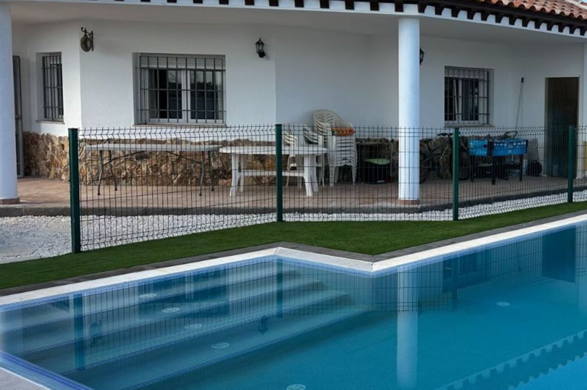 The villa is a spacious 234m over two floors sitting on a fully WALLED AND AGTED plot of 639m. It features a large, paved driveway leading to a DETACHED DOUBLE GARAGE (approx. 42 m2) with remote-control electric doors, an open fireplace, and even a kitchenette. The garage has direct access to both the kitchen and pool area so could quite easily and inexpensively be altered to an independent guest ANNEXE IF REQUIRED for family, friends or even with rental potential. The property is fully secur...