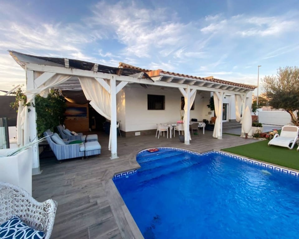 VILLA - 3 BEDROOM, 2 BATHROOM IN SAN FULGENCIO WITH PRIVATE POOL InterProperty Sales presents a three bedroom, two bathroom villa in La Marina. The property is tastefully decorated throughout and also benfits from air-conditioning. Being sold furnished, it's ready to move into and enjoy immediately! Outside is a well kept garde...