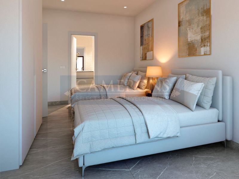New detached properties walking distance to the beach! These villas are distributed in two floors plus solarium. In the ground floor there is a bright living / dining area that opens to the outside to the pool and garden area, open plan kitchen and one bedroom and a bathroom. The upper floor has 2 double bedrooms and two bathrooms. From the terrace on the first floor there is an exterior access to the solarium with magnificent views of the natural landscape and the sea.All properties have privat...