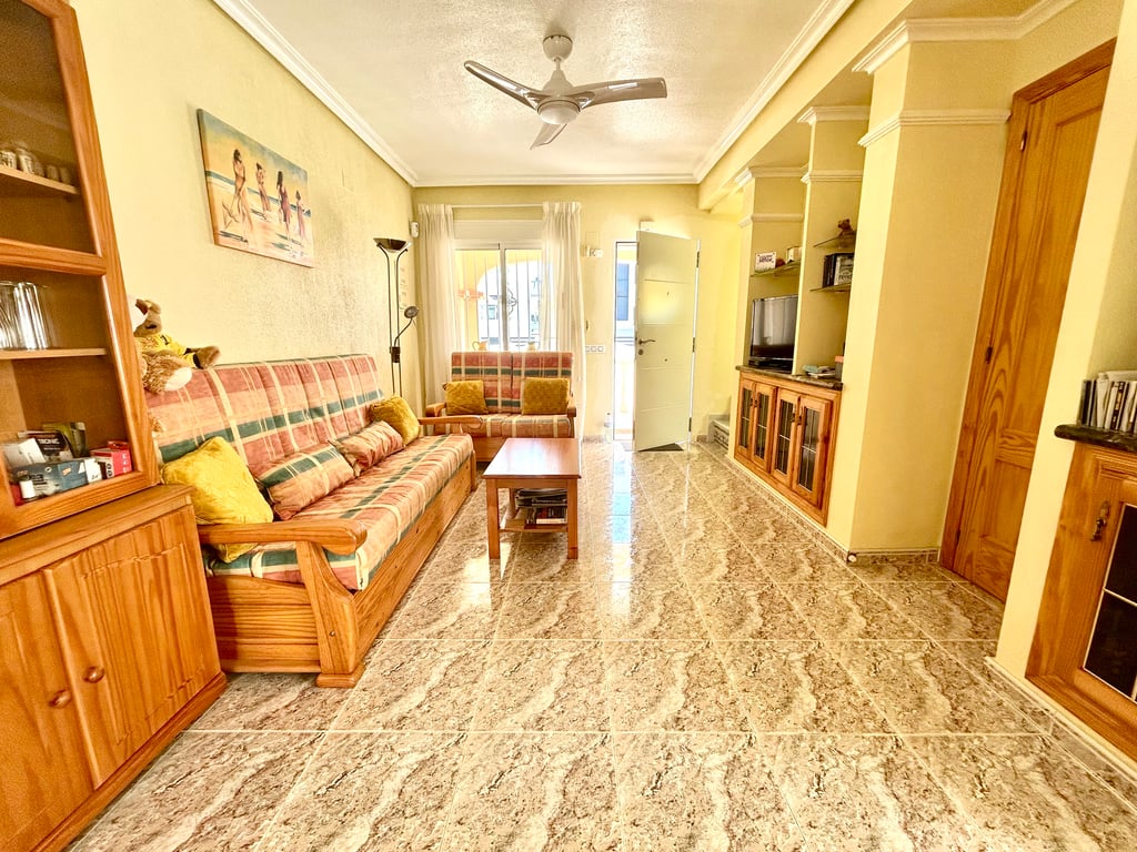 OFFER! 3bed Semi- Detached Villa next to La Zenia Boulevard. 3 bedrooms 2 bathrooms Communal Poo Terrace Pool Views Solarium Off Road Parking Furnished Discover this charming 3-bedroom, 2-bathroom semi-detached townhouse ideally located within walking distance of La Zenia Boulevard, offering the perfect blend of convenience, comfort, and Mediterranean outdoor living. At the front of the property, a sun-drenched private garden provides ample space not only for relaxing but also for secure off...