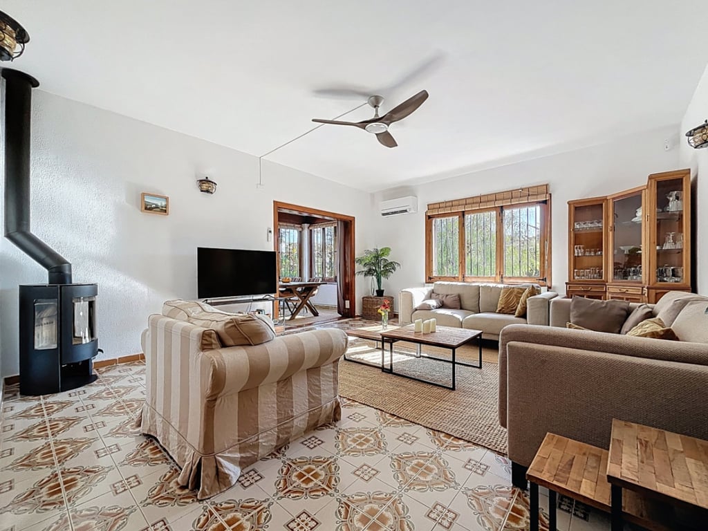 Cozy chalet with a large plot located in a privileged area of El Albir. Close to all amenities. The house is distributed over 2 floors. The ground floor consists of a covered terrace, an open kitchen, a lovely livingdining room, as well as a space designated as a cellar, 2 bedrooms, and 2 bathrooms. This floor has a completely independent entrance. The first floor features a bright covered terrace, through which we can access a magnificent livingdining room equipped with air conditioning and a f...