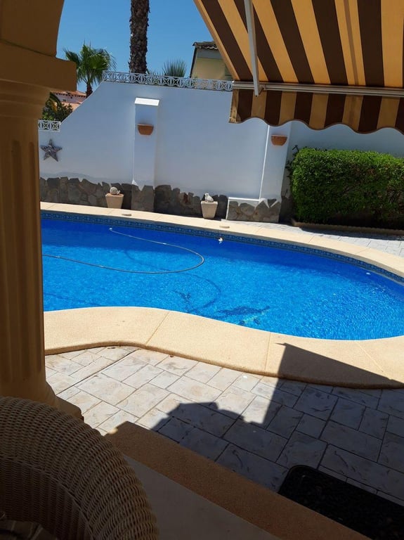 Villa for sale in Alfaz del Pi, Jardin de Alfaz, with 3 beds, 2 baths, 925 sqm plot, big pool, all in one level close to Benidorm. - 209 sqm build - cover terrace 25sqm, - pool 44sqm, - big living room, 3 bedrooms, 2 baths, - garage, -air conditioning, -central heating with petrol. - plot 925 sqm. -all in one floor. Price: 775000€