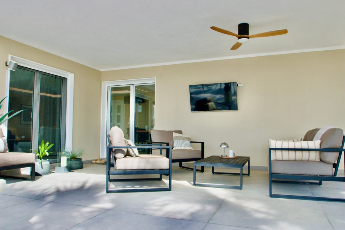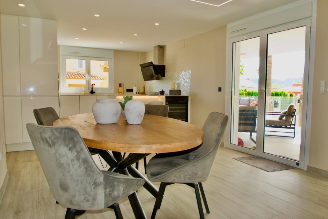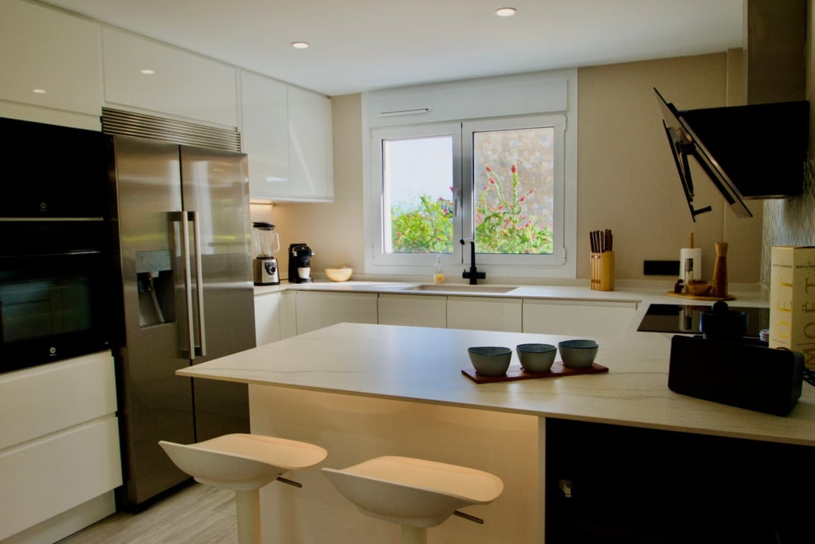 Exceptional southfacing villa, located in a very attractive residential area, centrally situated between Alfaz del Pi and Albir. The villa and the outdoor areas were completely renovated in 2023 with a modern design, using the highest quality materials and with elegant and contemporary decor. The property is distributed over two floors plus a basement. On the main floor, there is a spacious and bright openplan livingdining room with an integrated kitchen, as well as an office/bedroom and an inde...
