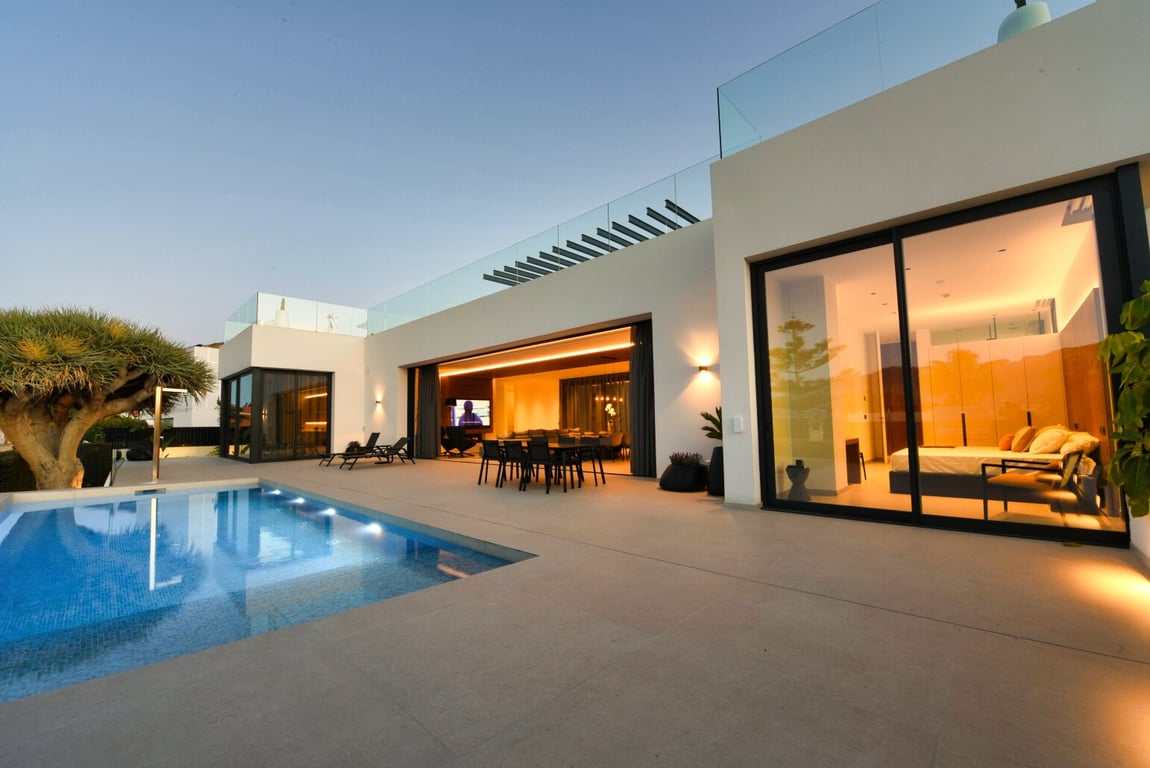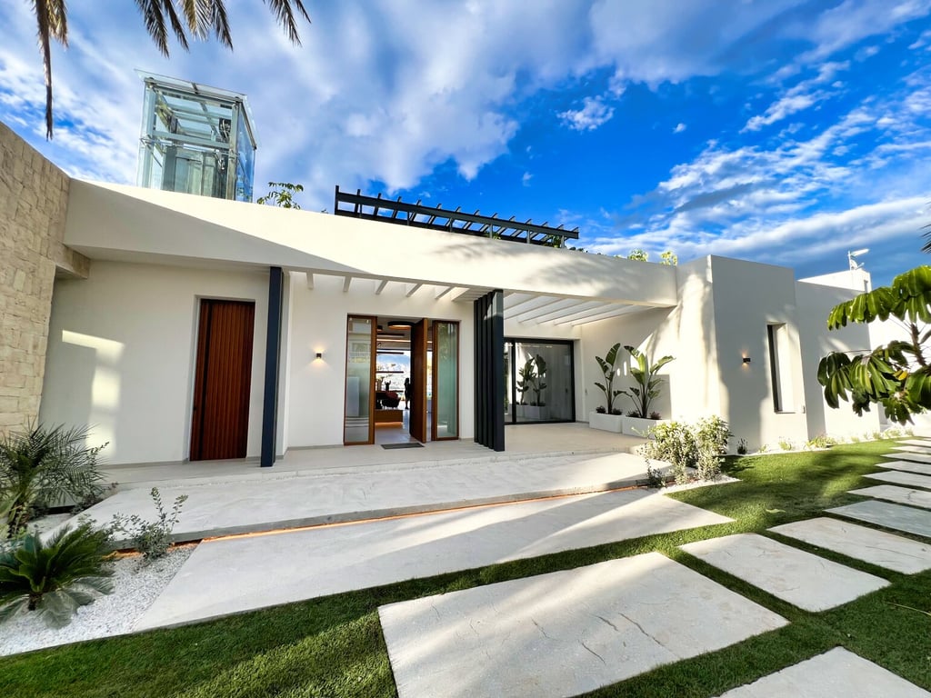 We are pleased to present this modern villa, located only a few minutes walk from the beach. With a plot of 1.126 m2 and a constructed area of 702 m2, this newly built house offers a spacious and comfortable living space. The villa has 4 bedrooms and 6 bathrooms, designed with comfort and style in mind. The open-plan living room includes a modern kitchen, creating a cosy space ideal for both quiet moments and entertaining friends and family. Outdoors, the terrace has a private swimming pool ...