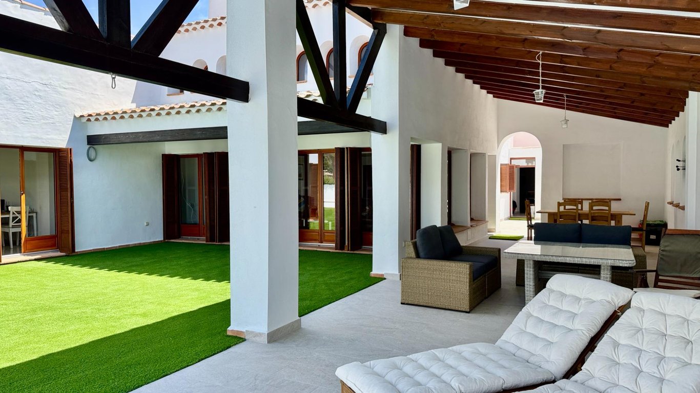 This is one of the larger Algaba villas, and one of the rare ones (1 out of 10) which has got west facing gardens and also first line to the golf course. It has been upgraded a lot , new pool, new fence and some walls, fully working on solar panels with battery storage. Large new garage with additional access from the large utility area. It consists of a large lounge, plenty of sunny areas, 3 bedrooms, one en-suite with walk-in wardrobe. One further bathroom and a separate guest toilet. Good siz...