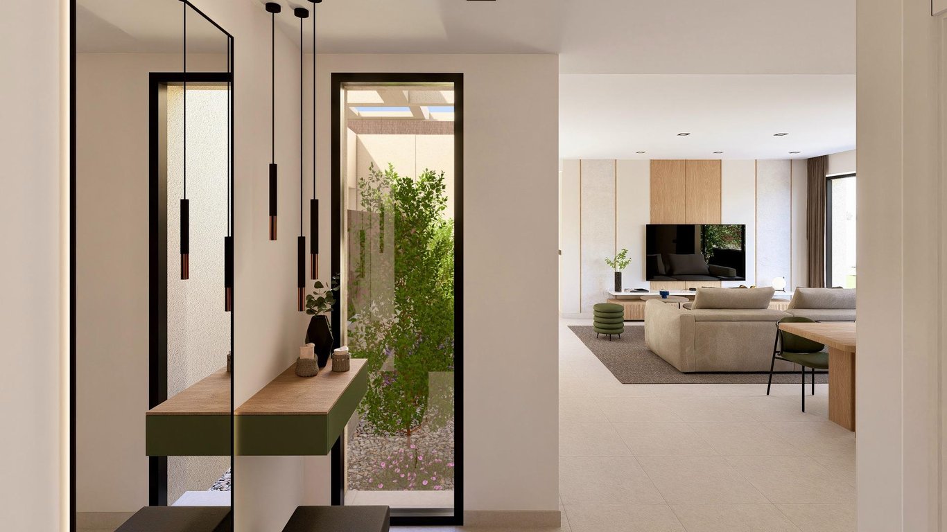 Good layout villa with 3 bedrooms, 2 bathrooms, on a 400 plus m2 plot with 18 m2 own pool. ~~From the entrance there are access to the lounge/dining room and the master bedroom which got en-suite bathroom and glass door to the pool area~~Nice size (44 m2) lounge with open kitchen. loads of glass and doors to the porch, swimmingpool and the optional outdoor kitchen. The large sliding doors gives you access to the garden with the 18 m2 pool, the 43 m2 terrace which got prep for an outdoor kitchen....