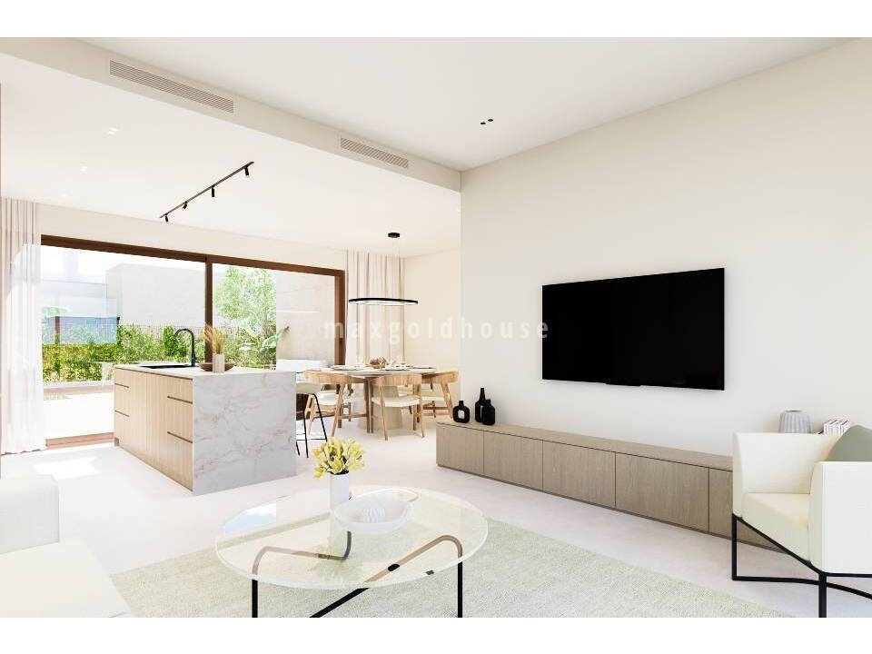 New project in Los Alcazares existing of bungalows (NEW-0066a) and villas. There are 3 types of villas. Villa A is built over 2 floors, has 3 bedrooms, 2 bathrooms, a guest toilet and a terrace on the first floor. Villa B has one floor and a solarium, 3 bedrooms and 2 bathrooms. Villa C has one floor with a solarium, 3 bedrooms, 2 bathrooms and a guest toilet. All villas have furthermore a spacious living / dining room with open kitchen and a laundry room. Included in the price are automatic shu...