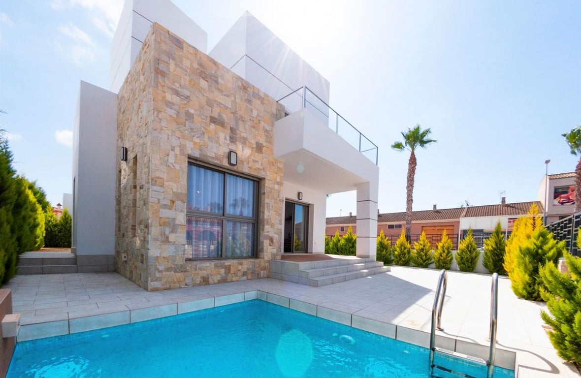 Stunning new build VILLA located in Los Alcazares a very popular and sought after location.Contemporary detached Villa in Los Alcazares with private garden, swimming pool and spacious sun terrace. 3 bedrooms, 3 bathrooms, a spacious living room with an open plan kitchen and dining room. On the ground floor, you have one bedroom which looks out on the private garden and a bathroom. The first floor consists of two double bedrooms, both with access to their private terraces with a family bathroom, ...