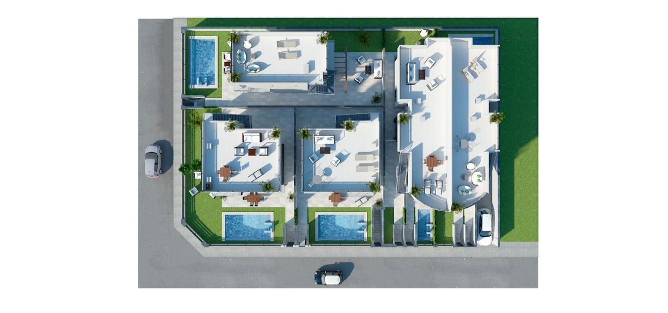 The property will meet the highest standards and will be equipped with:. . Private swimming pool with shower.. Kitchen completely furnished and equipped with oven, microwave, fridge, integrated dishwasher, hob and extractor fan.. Lighting: LED inside the property (dining room, kitchen, corridors and bathrooms), and well as in outdoor areas.. Lined wardrobes with drawers.. Fully fitted bathrooms with suspended toilet, vanity unit, mirror and shower with screen panel.. Pre-installation for air con...