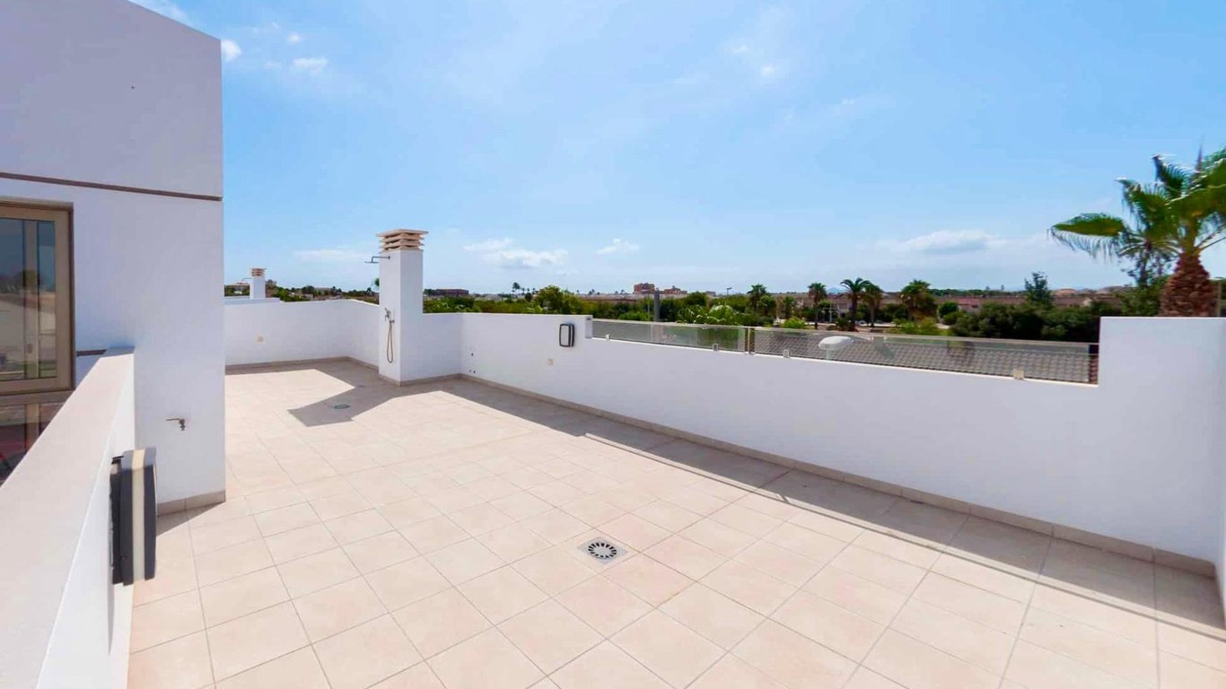 Fantastic villa in Los Alcazares with own pool and solarium. In walking distance to beach and restaurants/bars. Nearest bar/restaurant only 100 m away. The 525 strip with loads of both international and Spanish restaurants and bars can be reached in 10 min walk.~~This lovely villa is key ready, so ready to move in, furniture and kitchen appliances are also included.~~Consist of 3 bedrooms, 3 bathrooms (2 en-suite), private pool, large solarium, off road parking.~~The ground floor got a really go...