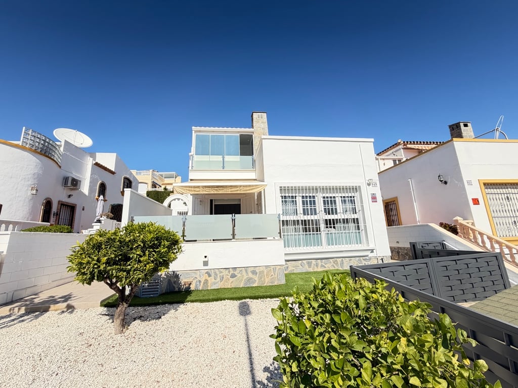 Los Dolses 3 bed 2 bath villa for sale with communal pool but has the possibility for a private swimming pool located close to amenities. Beautifully presented three-bedroom, two-bathroom detached villa located in the highly sought-after area of Los Dolses on the stunning Orihuela Costa. Finished to an exceptional show home standard, this impressive villa offers bright, spacious, and versatile living throughout. The welcoming lounge area seamlessly connects to the third bedroom, currently utili...