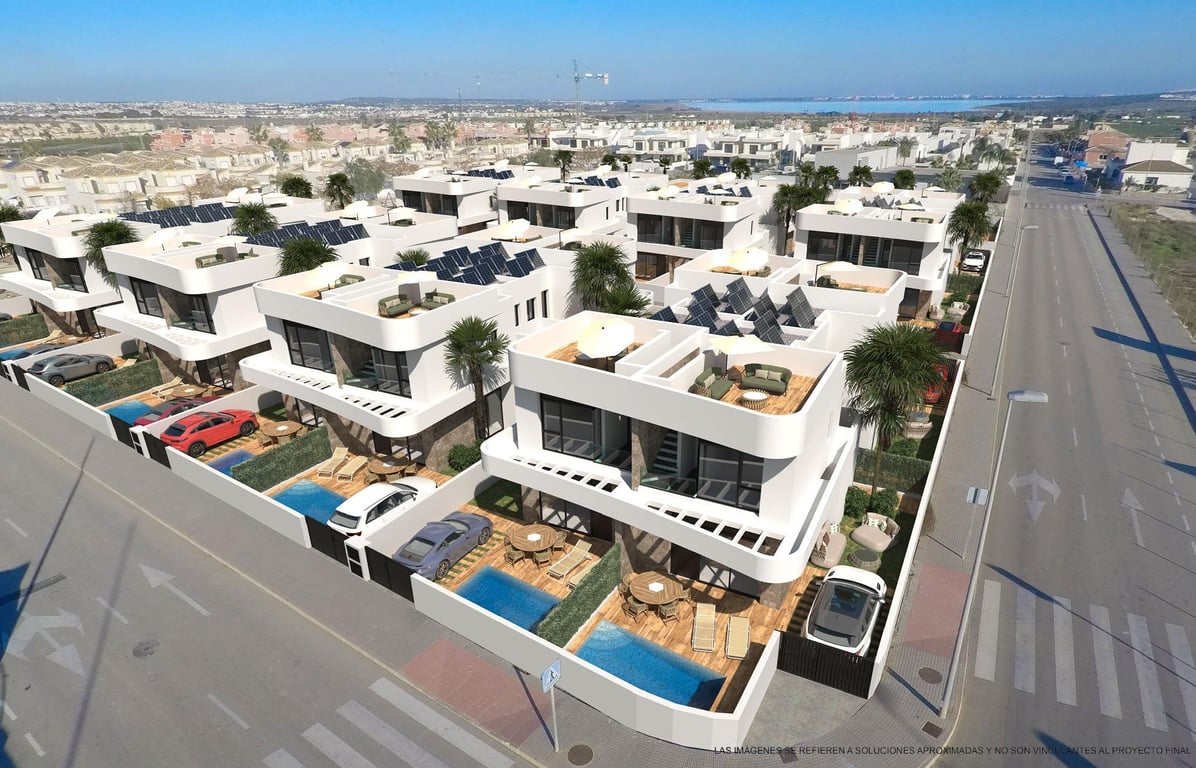 NEW BUILD VILLAS IN LOS MONTESINOS New construction project located in La Herrada (Los Montesinos), in a privileged location close to the best beaches of Guardamar and with all the amenities offered by a large municipality such as Los Montesinos. This project has 32 villas, some semi-detached on 2 floors and others independent on a single floor, which are delivered with the best equipment, including solarium, bath screens, garden finished with artificial grass of the best quality, decorat...