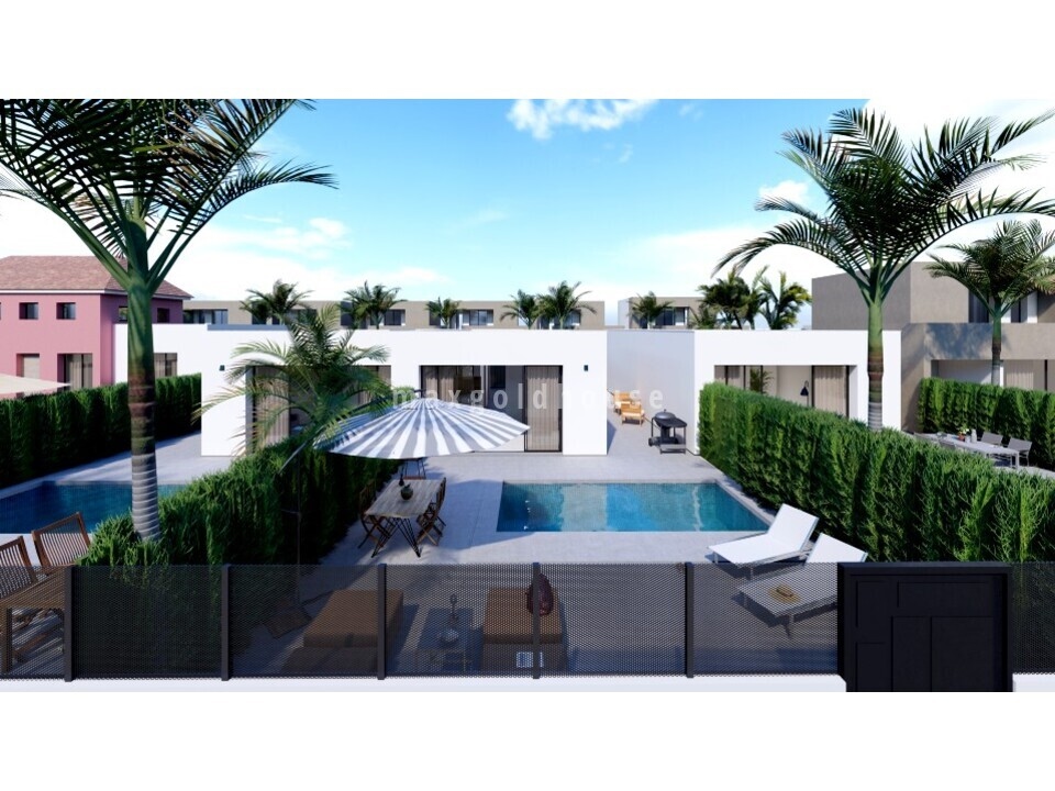 A beautiful new project in Los Urrutias, only 150 m from the Mar Menor and although in a very quiet environment, very close to all amenities. The south facing villas on one level come with 2 bedrooms, 2 bathrooms, and an open living/dining/kitchen area. Included in the price: pool, white goods, airco completely installed, LED-lights, furniture and a solarium. This is really a BARGAIN price for the perfect home on a superb location. Do not hesitate, as the villas will be sold soon. ref:NHA-HA-03...