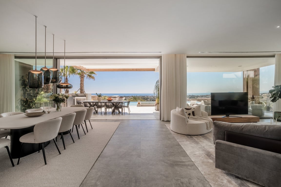 From the moment you arrive, you're welcomed by a horizon that seems to go on forever. With panoramic views that stretches from the Mediterranean Sea to the African coast. Its contemporary design enhances this experience, with open-plan interiors that blend effortlessly with the natural surroundings. Floor-to-ceiling windows and expansive living areas create a seamless indoor-outdoor flow, filling the space with natural light, fresh air, and uninterrupted views at every turn. This villa features ...