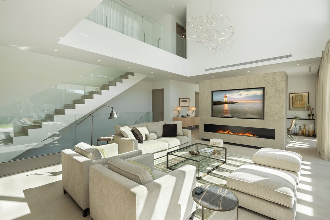 Located in La Carolina, one of the Golden Mile’s most established and discreet residential enclaves, this five-bedroom villa combines high building standards with an exceptional lifestyle setting, within walking distance of renowned restaurants, boutique shopping and the beach. Crafted by the esteemed Atlas Group, the villa is finished to a consistently high standard with premium technical specifications. A double-height living room with a striking vaulted ceiling and full-height patio glazing c...