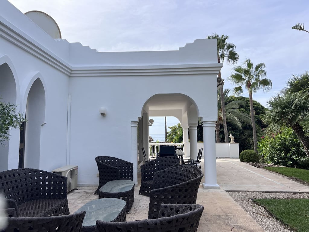 GREAT SE VIEW PROPERTY ; 2nd line beach, Bahia de Marbella, 4 bedrooms/ 4 bathrooms ; renovation needed Very private property located just few steps from the sandy beach of Bahia de Marbella. Main floor : open plan kitchen with the separate laundry room/storage; dining room, salon with fire place zone; main bedroom with bathroom on suite. Top floor with independent entrance you will find guest apartment which can be perfect for the office space with incredible sea views. Pool level – ground floo...
