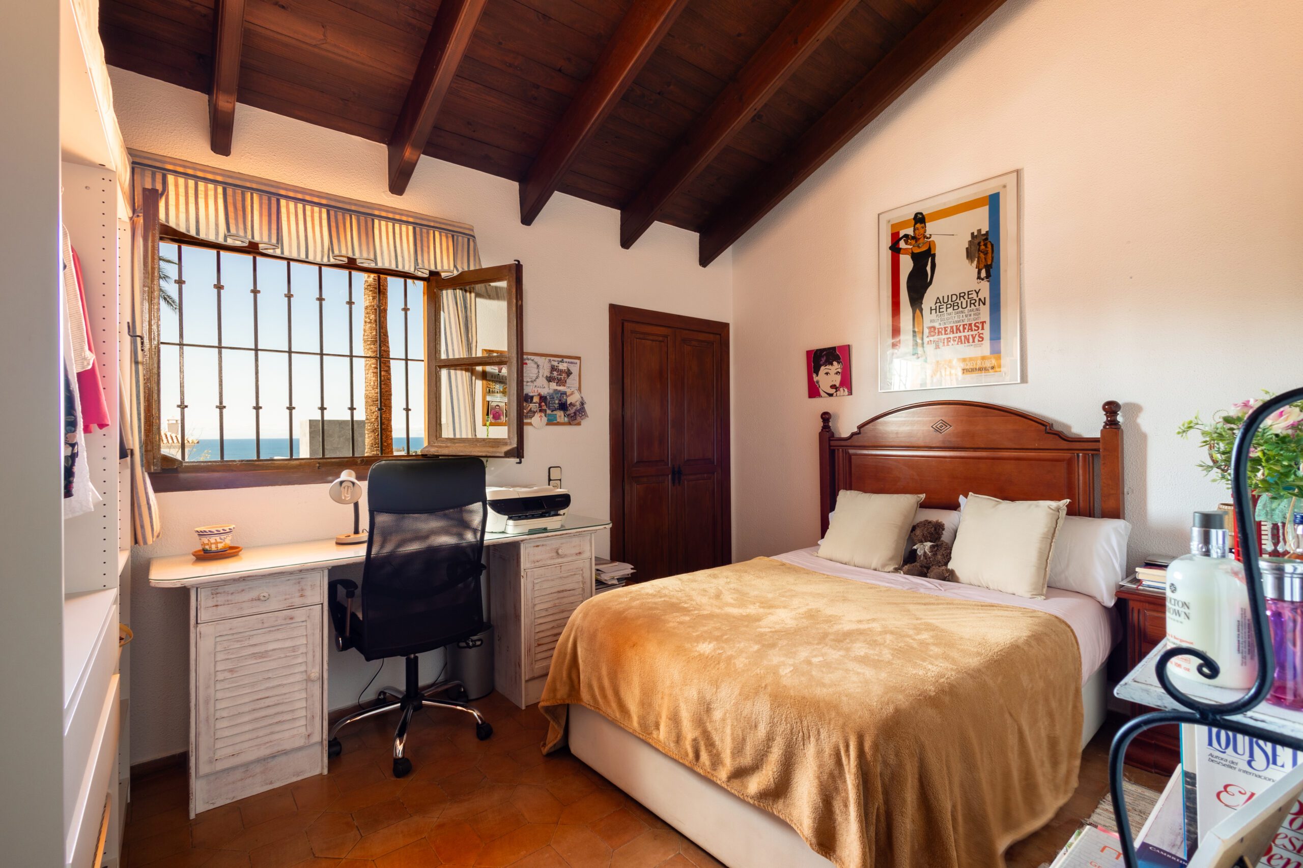Charming Andalusian villa with sea views in Rio Real, East Marbella. This charming villa stands out for its traditional Andalusian style, combining character, spaciousness and a very functional layout. With 450 m2 built on a 1,000 m2 plot, the property offers generous indoor and outdoor spaces, ideal for enjoying a comfortable and relaxed lifestyle. The house has 5 bedrooms and 4 bathrooms, with bright rooms that maintain a warm and authentic atmosphere. Details such as high ceilings, wooden bea...