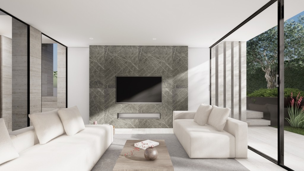 Sold as shown in the photos. Brand new south-facing villa currently under construction in a central location within walking distance of the beach, supermarkets, and restaurants. Situated on a small cul-de-sac, built to a high standard, with a large basement and sea views from the upper level. The villa has a modern and contemporary design with large windows, with top quality aluminum frames from floor to ceiling. The ground floor is planned around the swimming pool with its terrace and large win...