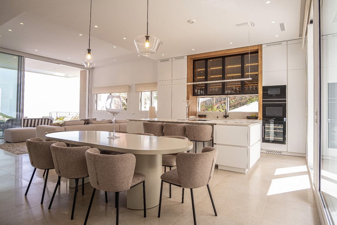 In a privileged enclave, at the foot of the Mijas mountain, lies this magnificent villa built to the highest quality standards and with exquisite attention to every detail. The property stands on a spacious 1,000 m2 plot offering impressive panoramic views of the Mediterranean Sea and the bay of Fuengirola. Its interior, with a usable area of 430 m2, is distributed over three perfectly designed levels to provide comfort, spaciousness, and elegance. Main floor: a completely open space with a magn...