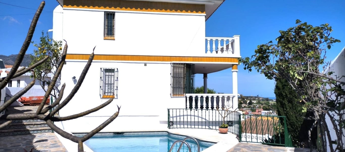 INVESTMENT OPPORTUNITY Detached villa located within 5 minutes drive to the beachfront of Fuengirola with beautiful sea views Some modernisation would be required in particular the bathrooms and independent apartment. You enter the property on the main level where you have a new kitchen diner with access to the front terrace, large lounge area again with access to front terrace, en suite bedroom with terrace. all of these rooms have lovely sea views, upstairs there are 2 large double bedroo...